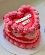 Step into a fairytale with our most romantic design yet. This three-tier masterpiece features smooth, ivory buttercream adorned with delicate, hand-piped vintage-inspired “lambeth” ruffles. Each tier is playfully accented with sweet cherry illustrations and finished with cascading, floor-length burgundy satin ribbons. It’s not just a dessert; it’s a centerpiece designed for your most unforgettable celebrations.
